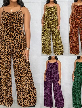 Damen Normal Overall Streetwear Leopard Ärmellos U-Ausschnitt Tasche Täglich Straße Normale Passform Gelb Marineblau Purpur Sommer