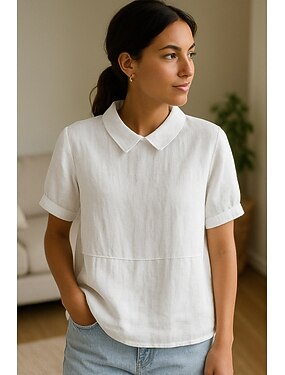 Damen Baumwoll-Leinen-Hemd 100% Baumwolle Einfach Modern Kurzarm Hemdkragen Normale Oberteile Täglich Blau Weiß Sommer
