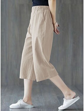 Damen Caprihose Kunstbaumwollleinen Hose Sommerhose Urlaub Basic Lässig Wadenlang Hohe Taille Einfach Tasche Elastischer Bund Komfort Weich Atmungsaktiv Dehnbar Strand Ferien Schwarz Weiß Gelb Rote