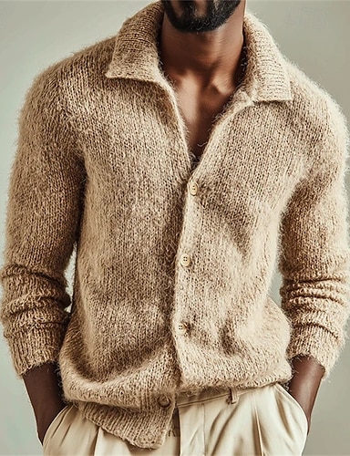 Herren Pullover Strickjacke Gerippt Stricken Normale Oberteile Gestrickt Einfach V Ausschnitt Urlaub Mode Lässig Alltagskleidung Bekleidung Frühling & Herbst Herbst Winter Kaki S M L