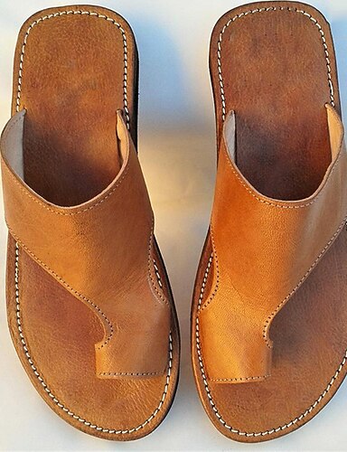 Braune Zehensandalen aus Kunstleder für Herren mit handgenähten Details – Sommerschuhe zum Reinschlüpfen im Vintage-Stil