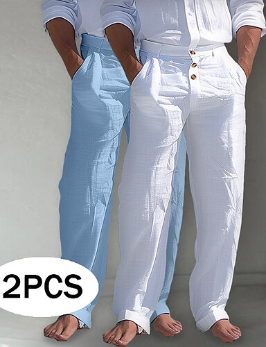 Herren Leinenhosen Hose Sommerhose Strandhose Fronttasche Gerader Schnitt Mehrfachpackung Einfach Komfort Atmungsaktiv Volle Länge Outdoor Geschäft Täglich Urlaub Mode Weiß + Khaki Khaki + Schwarz