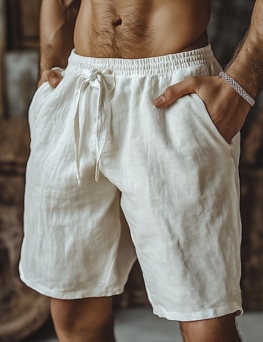 Herren Leinenshorts Sommershorts Strandshorts Kordelzug Elastischer Bund Reißverschlusstasche Einfach Einheitliche Farbe Komfort Weich Knielang Täglich Strand Mode Schick & Modern Blau Schwarz