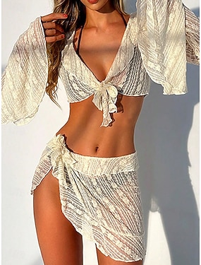 Damen Badeanzug Bikini Zweiteilig Rock Bademode Kordelzug Schlank Rückenfrei Urlaub Strandbekleidung Einfarbig V Ausschnitt Ärmellos Badeanzüge