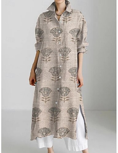Damen Midikleid Hemdblusenkleid Freizeitkleid Mode Modern Täglich Ferien Wochenende Normale Passform Blumen Grafik Dreiviertelarm Hemdkragen Rosa Khaki Grau Sommer Frühling Herbst