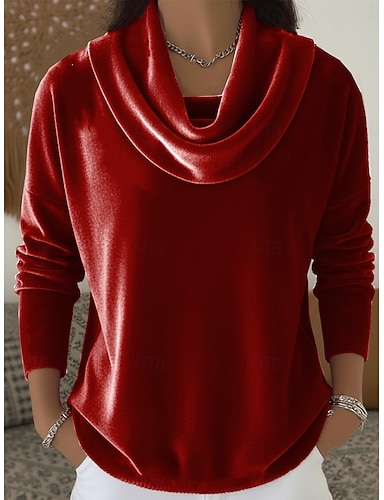 Damen Tunika T-Shirt Druck Gestuft Einfarbig Grafik Elegant Vintage Mode Langarm Wasserfallausschnitt Normale Oberteile Täglich Ausgehen Wochenende Blau Rosa Rote Braun Grün Herbst Winter