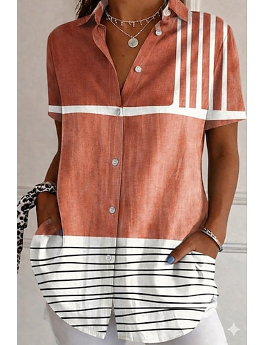 Damen Hemd Durchgeknöpft Hemd Freizeithemd Sommeroberteile Knöpfe Druck Grafik Geometrisch Abstrakt Vintage Stilvoll Modern Kurzarm Hemdkragen Lange Oberteile Täglich Schwarz und Weiß Ziegelrot