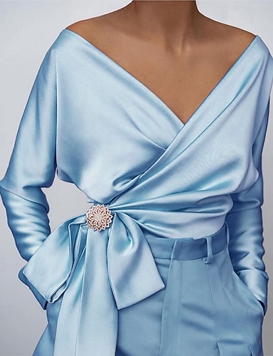 Damen Hemd Elegant Satin-Top Bluse Schnürung Einfach Elegant Stilvoll Langarm V Ausschnitt Crop Tops Ferien Ausgehen Aprikose Leicht Blau Frühling Herbst Winter