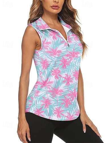 Damen Blumenmuster Oberteile Sporthemd Golf-Poloshirt Tennis Shirt Ärmellos Reißverschluss Blumen UPF50+ UV-beständig Hohe Elastizität Feuchtigkeitsableitend Atmungsaktiv Volleyball Tennis Golfspiel