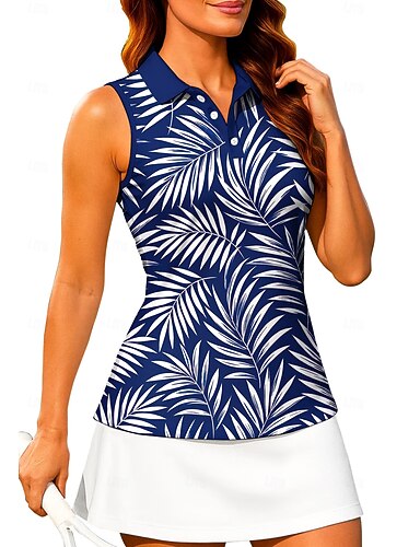 Damen Geometrisch Blumenmuster Oberteile Sporthemd Golf-Poloshirt Tank Top Ärmellos Blumen Knöpfe UPF50+ UV-beständig Hohe Elastizität Feuchtigkeitsableitend Atmungsaktiv Volleyball Tennis Golfspiel