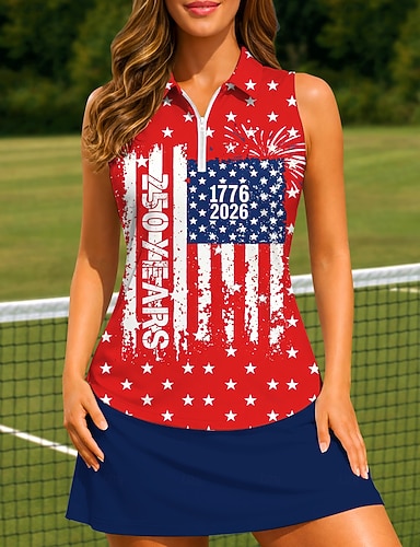 Tag der Unabhängigkeit Amerikas 250. Jahrestag Damen Grafik Sportshirt Tennis-Poloshirts Tanktops Ärmellos Viertel Postleitzahl Elastisch Schweißableitend Atmungsaktiv Volleyball Tennis Pickleball