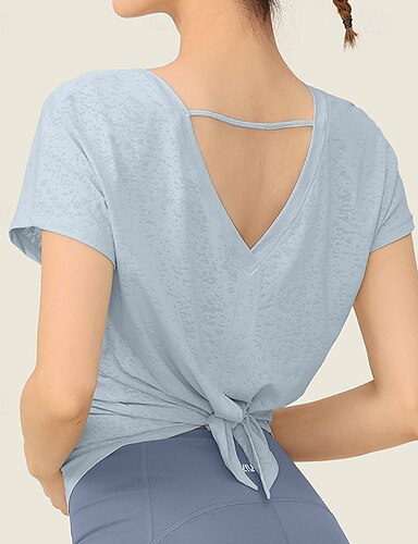 Damen Einfarbig Tennistop Kurze Ärmel Gerafft Schweißableitend Feuchtigkeitsableitend Atmungsaktiv Tennis Golfspiel Pickleball V Ausschnitt Schwarz Weiß Blau Tennisbekleidung