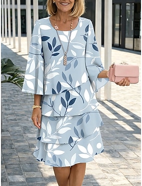 Damen Knielanges Kleid Shiftkleid Lässig Normale Passform Blumen Grafik Blatt Dreiviertelarm Rundhalsausschnitt Blau Rosa Grün Sommer Frühling