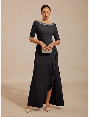 Damen Maxikleid A Linie Kleid Elegant Abendgesellschaft Verschönert Normale Passform Einfarbig Halbarm Rundhalsausschnitt Schwarz