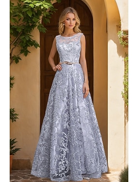 Jacquard A-Linie Abschlusskleider Elegantes Kleid Hochzeitsgast Feiertag Bodenlänge Ärmellos Rundhals Tüll mit Metallgürtel