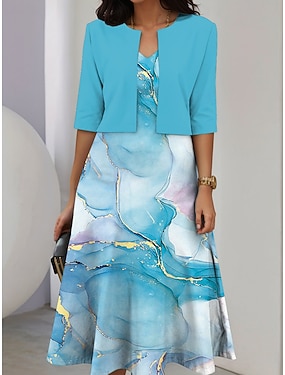 Damen Kleid-Set A Linie Kleid Sommerkleid Lässig Halbformelle Kleider Ombre Grafik Druck Midikleid Halbarm V Ausschnitt Urlaub Date Hellgelb Himmelblau Purpur Sommer Frühling Normale Passform