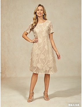 Damen Minikleid Shiftkleid Elegant Einfarbig Kurzarm Rundhalsausschnitt Mink