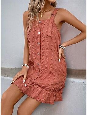 Damen Minikleid Sommerkleid Unterkleid Lässig Täglich Lässiger Schnitt Einfach Ärmellos Quadrathals Rote Grün Sommer