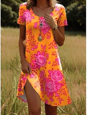 Damen Minikleid T-Shirt-Kleid A Linie Kleid Sommerkleid Lässig Täglich Normale Passform Blumen Grafik Kurzarm Rundhalsausschnitt Weiß Orange Sommer Frühling