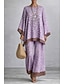 Damen Hosen-Sets Kunstbaumwollleinen Langarm V Ausschnitt Blumen Mode Streetwear Lässig Täglich Outdoor Purpur Sommer Normale Passform