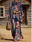Damen Hosen-Sets Langarm Rundhals Blumen Grafik Geometrisch Druck Mode Streetwear Lässig Täglich Outdoor Blau Grün Sommer Lässiger Schnitt
