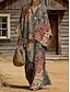 Wikinger Boho Damen Strickjacke Vintage Alltag Ethno Stil Geometrisch Farbverlauf Gerippt Kapuze Tasche Knöpfe Druck Langarm Lange Oberteile Strick Outdoor Wochenende Gelb Blau Herbst Winter
