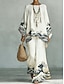 Damen Hosen-Sets Langarm Rundhals Grafik Druck Mode Streetwear Lässig Täglich Outdoor Weiß Frühling & Sommer Lässiger Schnitt