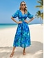 Damen Midikleid A Linie Kleid Urlaub Lässig Outdoor Ausgehen Normale Passform Blumen Kurzarm V Ausschnitt Blau Sommer Frühling
