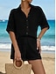 Damen Shorts-Sets Kurzarm Hemdkragen Einfarbig Mode Streetwear Lässig Täglich Outdoor Schwarz Weiß Sommer Normale Passform