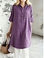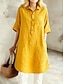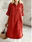 Damen Midikleid Kunstbaumwollleinen Shiftkleid Lässig Täglich Lässiger Schnitt Einfach Halbarm Revers Gelb Rote Purpur Grün Sommer Frühling Herbst
