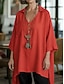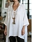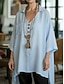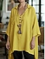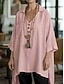 Damen Bluse Kunstbaumwollleinen Tasche Knöpfe Einfarbig Stilvoll Lässig Dreiviertelarm V Ausschnitt Lange Oberteile Täglich Blau Weiß Gelb Rosa Rote Sommer Frühling Herbst