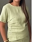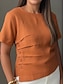 Damen Baumwoll-Leinen T-Shirt Schlicht Basic Lässig Kurzarm Rundhals Reguläre Oberteile Täglich Wochenende Blau Weiß Rot Orange Grün Sommer Frühling