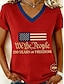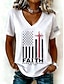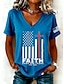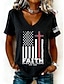 Amerikanischer Unabhängigkeitstag Damen T Shirt Druck Grafik Flagge Vintage Stilvoll Klassisch Kurzarm V Ausschnitt Normale Oberteile Täglich Blau Schwarz Weiß Rote Sommer Frühling