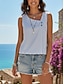 Damen Camp-Kragenhemd Spitze Patchwork Einfarbig Elegant Stilvoll Lässig Ärmellos Rundhalsausschnitt Normale Oberteile Täglich Blau Schwarz Weiß Rosa Rote Sommer Frühling