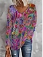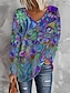 Damen T Shirt Druck Grafik Abstrakt Vintage Mode Stilvoll Langarm V Ausschnitt Normale Oberteile Täglich Blau Rosa Purpur Grün Frühling Herbst