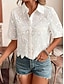 Damen Bluse Lochmuster Einfarbig Stilvoll Lässig Kurzarm Hemdkragen Normale Oberteile Täglich Weiß Sommer Frühling Herbst