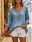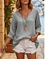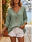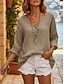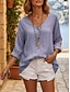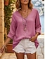 Damen Bluse Hemd aus Leinenimitat Knöpfe Einfarbig Stilvoll Lässig Dreiviertelarm V Ausschnitt Normale Oberteile Täglich Blau Schwarz Gelb Fuchsie Grau Sommer Frühling Herbst