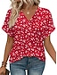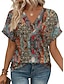 Damenbluse aus leinenähnlichem atmungsaktivem leichtem grafischem Paisley elegantem Boho vintage kurzärmligen V-Ausschnitt regelmäßigen Tops täglich Urlaub Ausgehen weiß pink rot blau orange Sommer