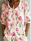 Damen T Shirt Druck Blumen Grafik Pflanzen Vintage Stilvoll Lässig Kurzarm V Ausschnitt Normale Oberteile Täglich Blau Rote Purpur Grün Sommer Frühling