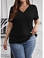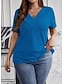 Damen Übergröße Übergroße Rippstricktops T Shirt Stilvoll Lässig Kurzarm V Ausschnitt Lange Oberteile Täglich Ausgehen Wochenende Schwarz Wein Armeegrün Königsblau Purpur Sommer Frühling