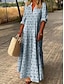 Damen Maxikleid Sommerkleid Freizeitkleid Druckkleid Elegant Mode Modern Outdoor Urlaub Ausgehen Normale Passform Geometrisch Kurzarm V Ausschnitt Blau Rosa Grün Grau Sommer Frühling