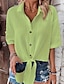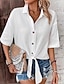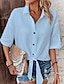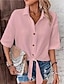 Damen Freizeithemd Knopfhemd Bluse Gerafft Vorderknoten Knöpfe Einfarbig Einfach Täglich Stilvoll Lässig Halbarm Umlegekragen Normale Oberteile Täglich Ferien Strandbekleidung Blau Weiß Rosa Grün