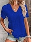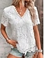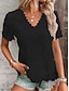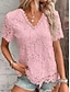 Damen T Shirt T-Shirt Spitze Patchwork Einfach Elegant Mode Stilvoll Kurzarm V Ausschnitt Normale Oberteile Täglich Ausgehen Wochenende Blau Schwarz Weiß Rosa Rote Sommer Frühling