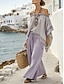 Damen Zweiteilige Sets Hosen-Sets Kunstbaumwollleinen Halbarm Schulterfrei Gestreift Vintage Mode Streetwear Lässig Täglich Outdoor Purpur Khaki Sommer Lässiger Schnitt