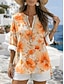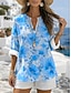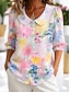 Damen Bluse Rüsche Druck Blumen Stilvoll Modern Dreiviertelarm V Ausschnitt Normale Oberteile Täglich Ferien Blau Rosa Orange Grün Sommer