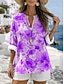 Womanshemd V-Ausschnitt Knopfdown Bluse Mode Streetwear Floral Knöpfe Druck Kurzarm Reguläre Tops Geteilte Ausschnitt Lässig Weiß Pink Himmelblau Sommer