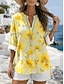 Damen Bluse Druck Blumen Grafik Vintage Täglich Stilvoll Langarm V Ausschnitt Normale Oberteile Lässig Täglich Ferien Blau Gelb Purpur Orange Sommer Frühling