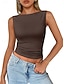 Damen Tank Top Ärmelloses Shirt T-Shirt Einfarbig Vintage Mode Stilvoll Ärmellos U-Boot-Ausschnitt Normale Oberteile Täglich Ausgehen Wochenende Dunkelbraun Salbeigrün Schwarz Armeegrün Staubiges Blau