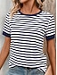 Damen T Shirt Druck Grafik Gestreift Vintage Stilvoll Klassisch Kurzarm Rundhalsausschnitt Normale Oberteile Täglich Wochenende Blau Weiß Sommer Frühling