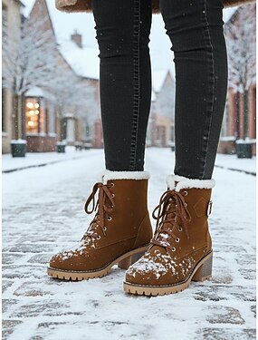 Damen Winterstiefel aus Wildlederimitat mit hohem Absatz – pelzgefütterte Schnürstiefel mit dickem Absatz für Schnee und kaltes Wetter